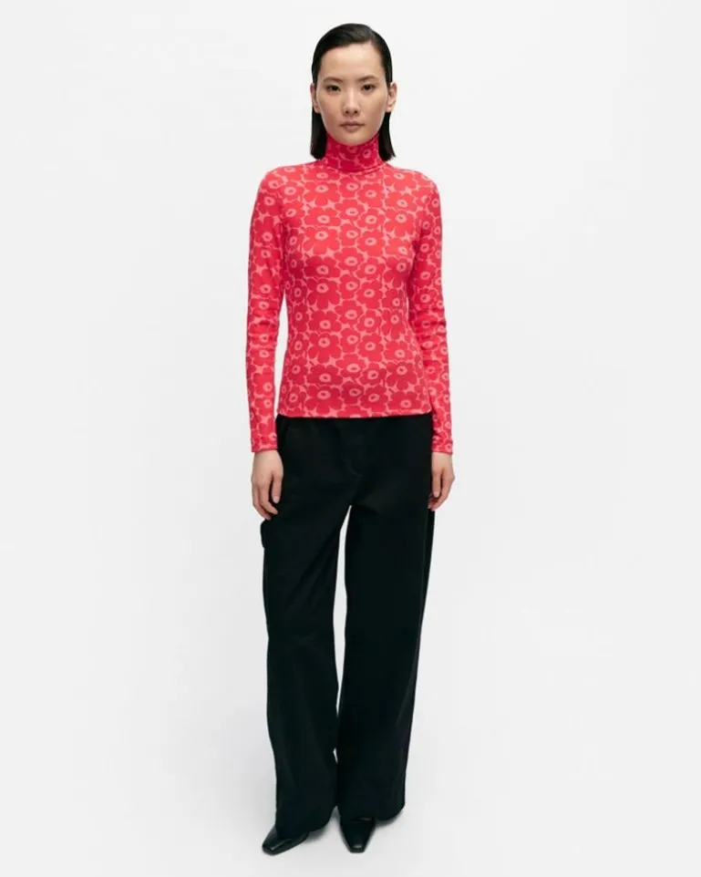 The Emali Organic Cotton Rib Jersey Turtleneck Has A Skinny Fit And It Is Printed In The Unikko Pattern. The Product Contains 5% Elastane.