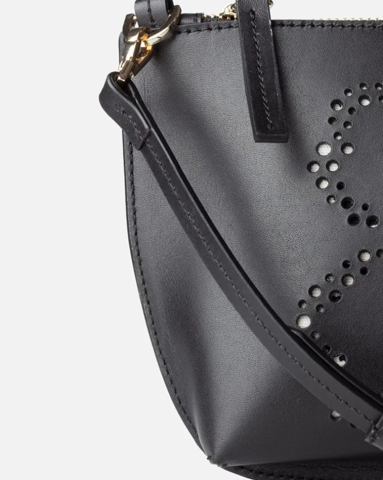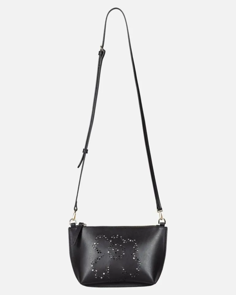 The Imprint Crossbody Unikko Shoulder Bag Is Made Of Traceable Scandinavian Leather And It Features The Unikko Flower Perforation In The Front. The Bag Has A Detachable And Adjustable Shoulder Strap, A Zipper Opening, And A Slip-In Pocket On The Inside. The Inside Lining Is Made Of Cotton In The Unikko Pattern.