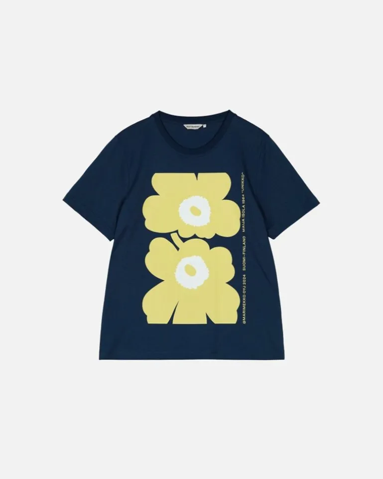 The Men’S Fit Embla T-Shirt Is Made Of Organic Cotton Jersey, And It Features The Unikko Placement Print With The Marimekko Print Text In The Front. The T-Shirt Has A Ribbed O-Neck.