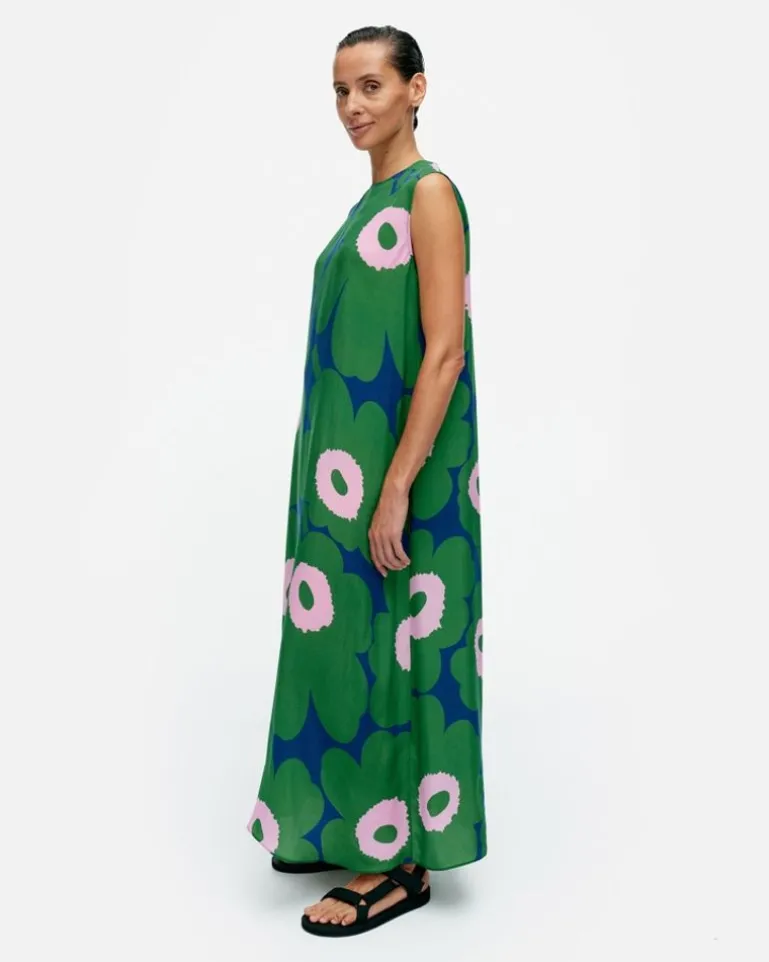 The Migot Cupro Dress Has A Slim, A-Line Fit And It Is Printed In The Unikko Pattern. The Sleeveless Dress Has A Concealed Zipper With Long Ribbon Pullers At The Back Neckline And Pockets At The Side Seams.