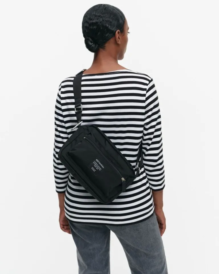 The My Things Shoulder Bag Is Made Of Recycled Polyamide. The Bag Has A Zipper Closure, Two Zipper Pockets On The Outside, And Four Pockets On The Inside. The Adjustable Shoulder Strap Is Made Of Nylon, And It Has A Metal Clip Hook For Hanging Small Items.