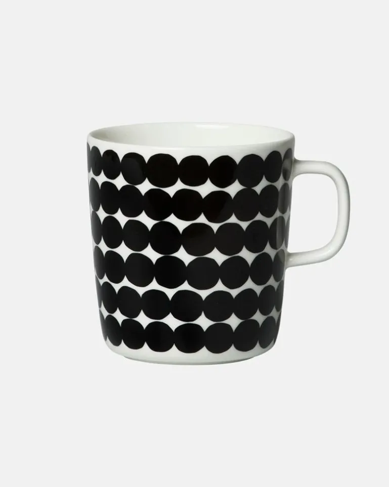 In The Räsymatto Pattern On This Oiva Mug You Can See A Rag Rug Placed On The Floor Of A Garden Cottage, With Rays Of Sun Dancing On Its Figures. The Mug Is Made Of Dishwasher, Oven, Microwave And Freezer Proof White Stoneware.
