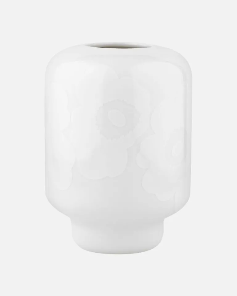 Made Of White Stoneware, This Vase Features The White-On-White Unikko Pattern.