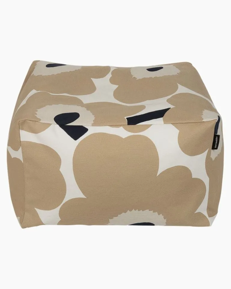 The Puffi Seat Cushion Is Made Of Heavyweight Upholstery Cotton In The Off White, Beige And Dark Blue Unikko (Poppy) Pattern. The Cushion Is Filled With Small Styrofoam Pearls And The Cover Is Removable And Washable.