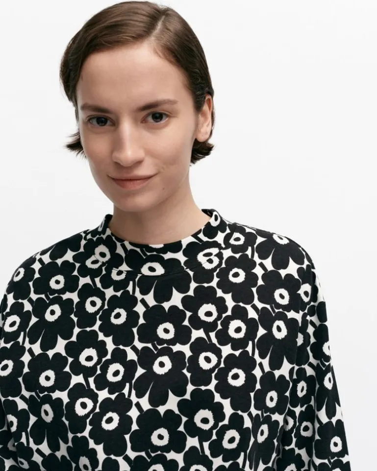 The Valkea Cotton Jersey Top Has An Oversized, Straight Fit, And It Features The Unikko Pattern. The Top Has An O-Neck With A Wide Printed Rib And Long, Loose Sleeves.