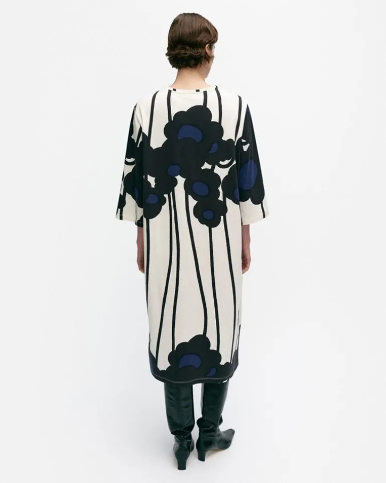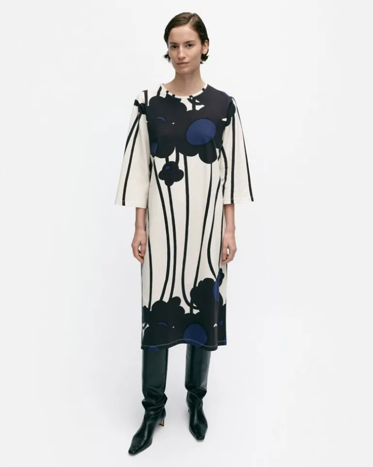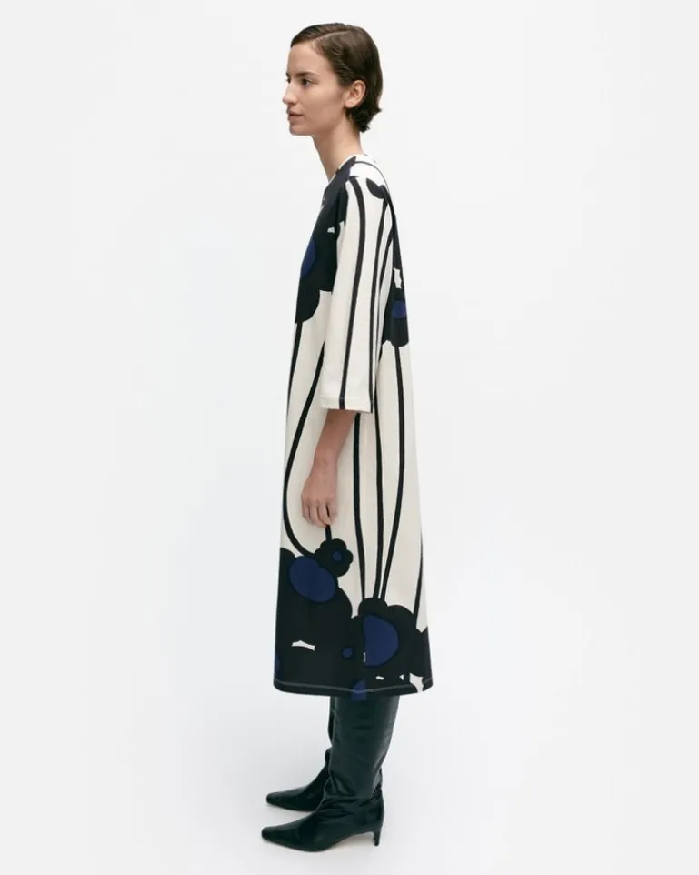 The Valla Cotton Jersey Dress Has A Relaxed, Straight Fit, And It Features The Lammet Pattern. The Dress Has An O-Neck With A Narrow Printed Rib And Loose Three-Quarter Sleeves.
