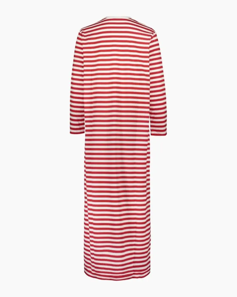 You’Ll Want To Stay In This Long, Comfy Cotton Nightdress Long After You’Ve Woken Up. The Dress Has A Classic Black And White Tasaraita Pattern, A Round Ribbed Neckline, Long Sleeves And A Slightly Widening Cut To The Hemline Just Above The Ankle.