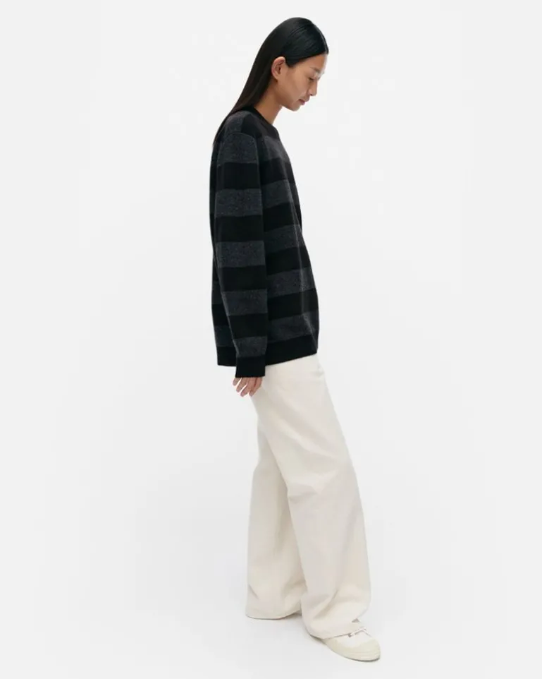 The Men’S Fit Koju Wool Jumper Is Made Of Certified Wool In The Maalis Pattern. The Jumper Has A Double-Ribbed O-Neck, The Small Embroidered Unikko Flower In The Front, And Wide Ribbing At The Sleeve Ends And Hemline.