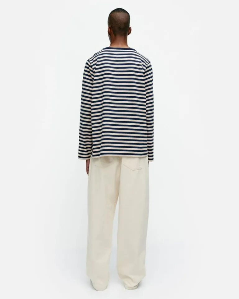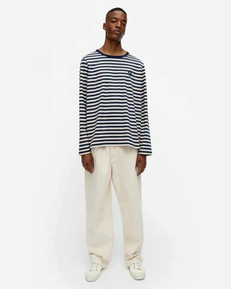 The Men’S Fit Longsleeve Top Is Made Of Cotton Jersey, And It Features The Tasaraita Pattern As Well As The Small Unikko Flower, Which Is Printed In The Front. The Top Has A Ribbed O-Neck.