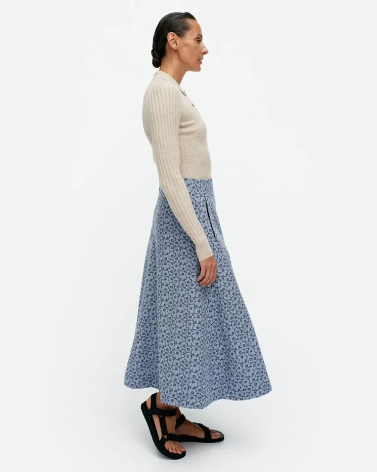 The Koski Skirt Is Made Of Organic Cotton With A Slim, A-Line Fit And The Unikko Pattern. The Skirt Has A Concealed Zipper In The Back Seam, And A Kangaroo Pocket And Panel Seams In The Front.