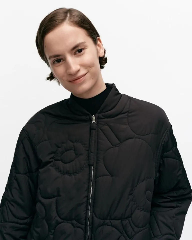 The Kuori Lightweight Padded Coat Is Made Of Recycled Polyester, And It Has A Relaxed, Straight Fit. The Reversible Coat Has The Quilted Unikko Pattern On One Side And An Even, Unquilted Side On The Other. The Coat Has A Band Collar, A Metal Zipper, And List Pockets. The Marimekko Label Is Sewn Onto The Back Neckline On Both Sides.