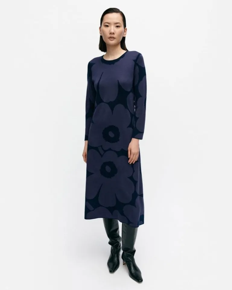 The Putrido Knitted Dress Is Made Of A Merino Wool And Ecovero™ Viscose Blend, And It Has A Slim Fit, A Straight Top, And A Flared Cut Hem. The Dress Features The Unikko Pattern, A Double-Ribbed O-Neck, And Bracelet-Length Sleeves .