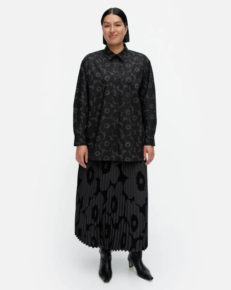 The Ruoste Shirt Is Made Of Organic Cotton Poplin, And It Has A Relaxed, Straight Fit And The Mini Unikko Pattern. The Shirt Has A Pointed Collar, A Concealed Button List, And Cuffed Sleeves With Button Closures. The Long, Curved Hem Has Side Slits.