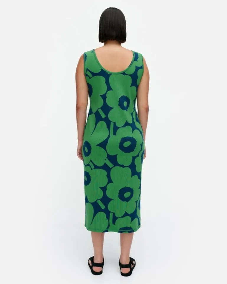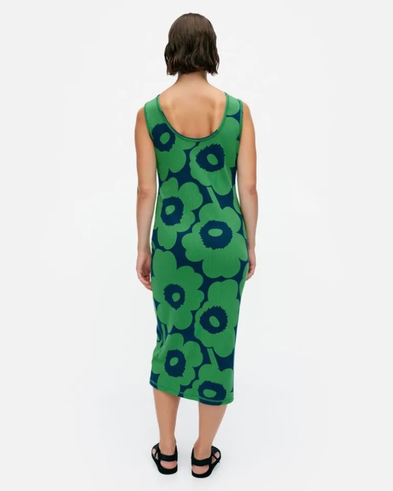 The Simpukka Cotton Rib Jersey Dress Has A Slim, Straight Fit, And It Features The Unikko Pattern. The Sleeveless Dress Has An Open Neckline In The Front, A Low Back Neckline, And Sleeve Openings, All With A Self-Fabric Finish.