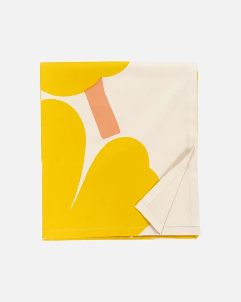 This Unbleached Cotton Sateen Tablecloth Features The Unikko Pattern, Which Is Printed In Helsinki. The Edges Of The Tablecloth Are Stitched.