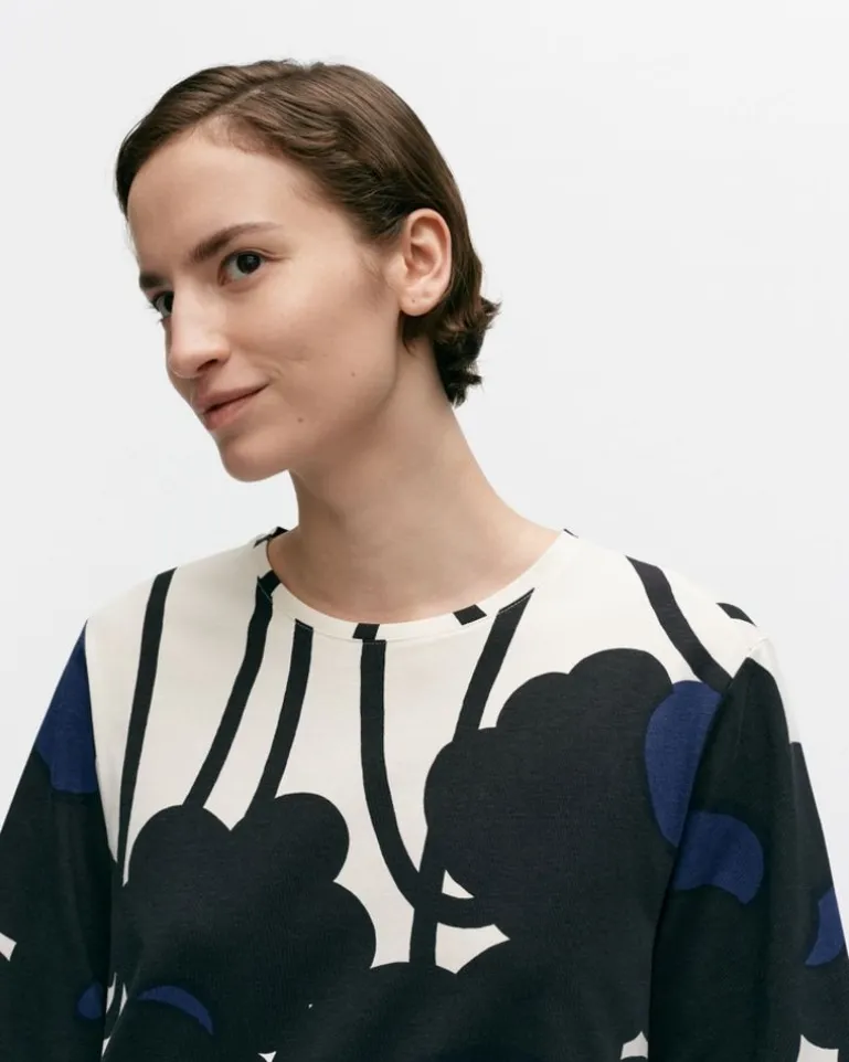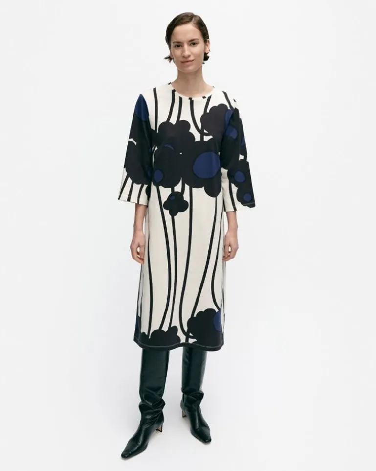 The Valla Cotton Jersey Dress Has A Relaxed, Straight Fit, And It Features The Lammet Pattern. The Dress Has An O-Neck With A Narrow Printed Rib And Loose Three-Quarter Sleeves.