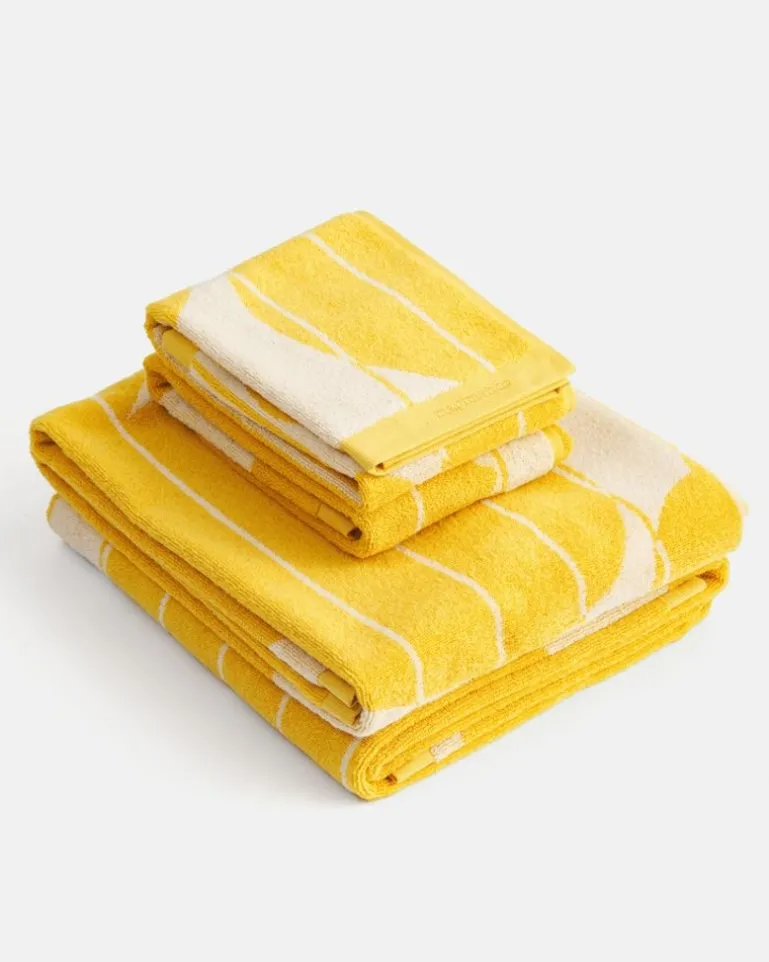 The Vesi Unikko Pattern Bath Towel Is Made Of Organic Cotton Terry. The Pattern’S Colors Are Reversed On The Other Side Of The Towel.